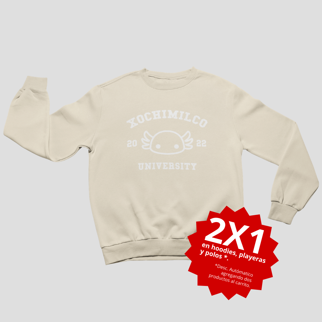 PullOver hecha de 50% algodón y 50% poliéster. Impresión en serigrafía.